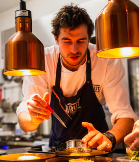 جميع المكونات التي نستخدمها هنا في مطعمنا هي: محلي. نقوم بتخزين مطبخ مطعمنا بنفس الطريقة التي نقوم بتخزين مطبخنا المنزلي ، مع التوصيلات اليومية للمكونات الطازجة التي نختارها بأنفسنا ، في السوق كل صباح.